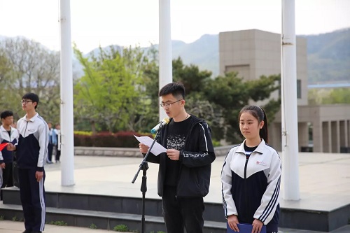 最后,全校一千多名师生齐唱共青团团歌。场面恢弘,气势磅礴。